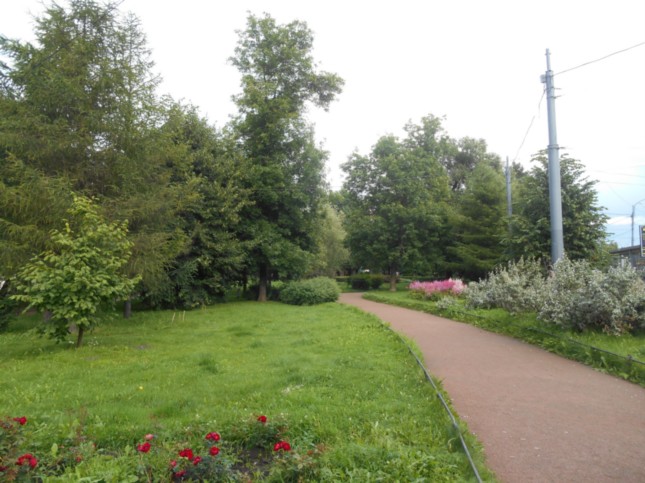 Jardines cercanos a la iglesia de La Natividad en la orilla opuesta donde estaba el hotel del río Neva, concretamente en la isla Petrogradsky.