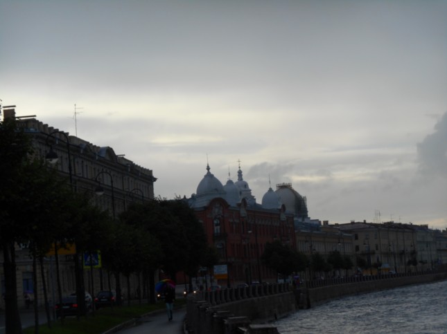 Mi recorrido aquella tarde, saliendo del hotel, fue cruzar el río Neva por el puente Tuchov, llegar al parque Knyaz-Vladimirskiy skver, visitar la iglesia del Principe Vladimir, volver por el puente Birzhevoy y regresar al hotel a mi poco a poco por los problemas de mi rodilla operada de menisco hacía dos meses.