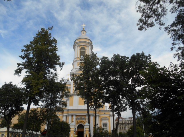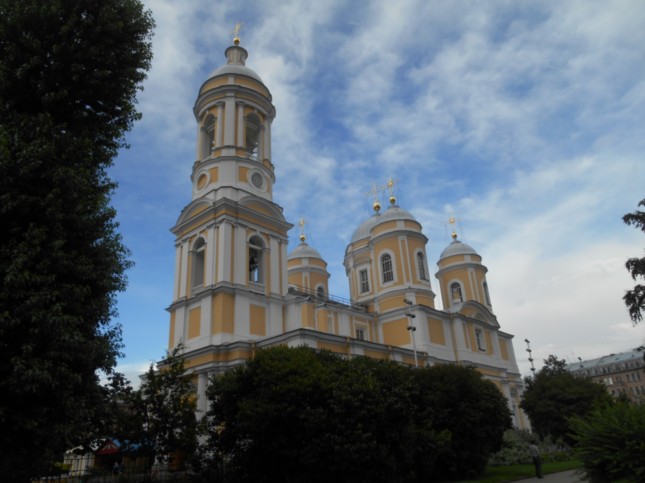 Es un clásico elegante con cinco cúpulas como si estuvieran levantadas en los cielos sombríos de San Petersburgo, y los interiores son agradables a la vista una mezcla de azul y blanco.