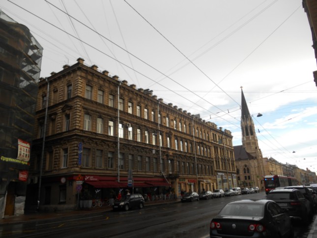 Por esta calle, Sredniy Prospekt, me encontré con esta iglesia, iglesia luterana de San Miguel.