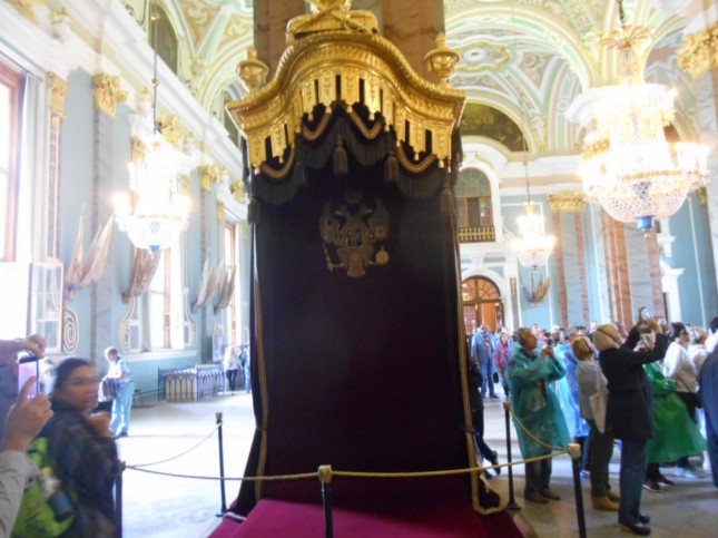 Trono de los zares en el interior de esa catedral y como se aprecia sin asiento para sentarse el zar.