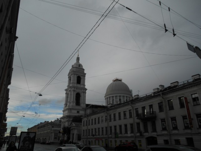 Siguiendo mi camino hacia el hotel, fotografía de la iglesia de Santa Catalina, sita en la avenida Nevsky., que estaban restaurando.