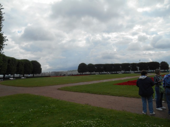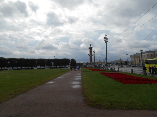 Por fin paró el autobús y comenzamos a pasear un poquito por este parque al lado del edificio de La Bolsa de San Petersburgo y de Los Faros.