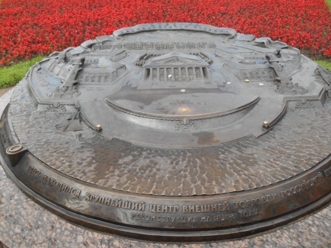 Tapa conmemorativa en este parque de Birzhevoy Skver, en el suelo.