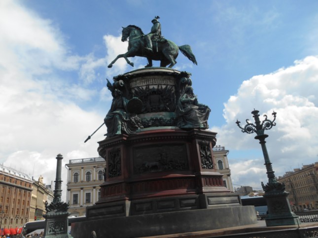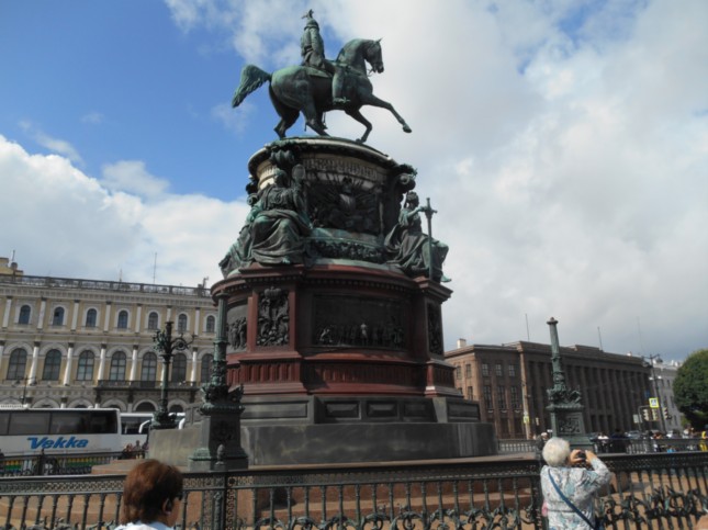 Estatua ecuestre del Zar Nicolás I en la Plaza de San Isaac, ya paseando tras bajar del autobús.