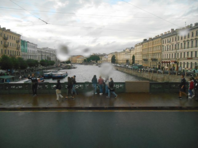 Fotografía de uno de los canales del río Neva, desde el mismo autobús.