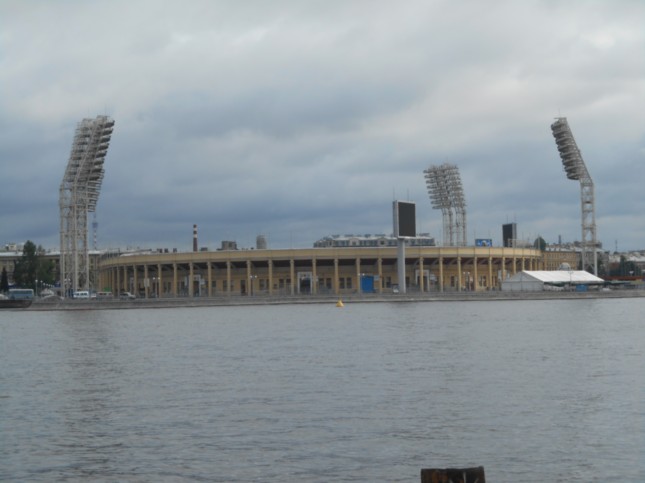 En frente del hotel y al otro lado del río Neva, el estadio Petrovsky, todavía en esa visita panorámica.