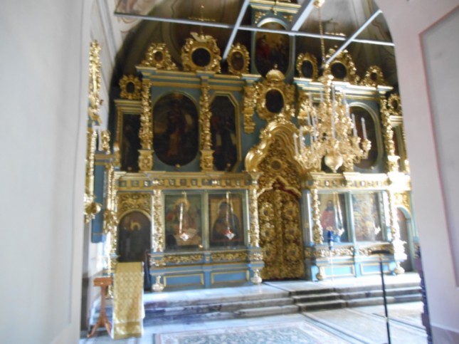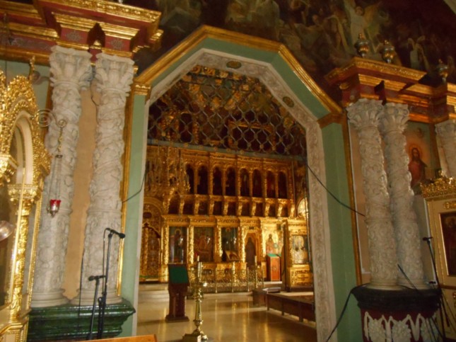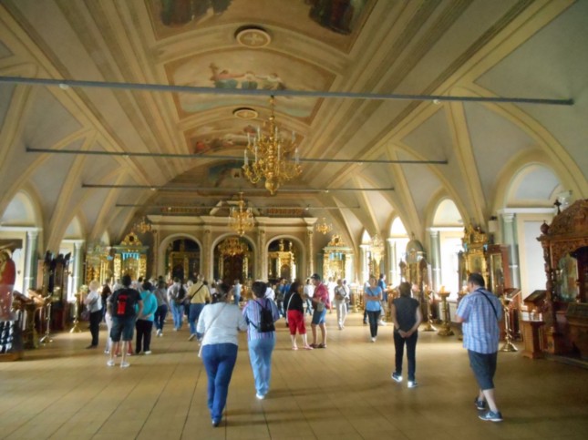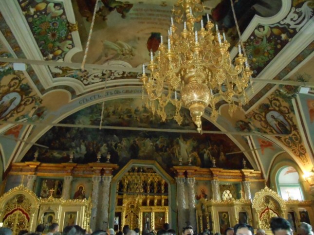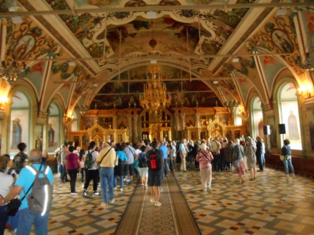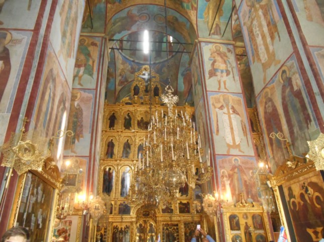 Interior del Refectorio de San Sergio, donde se pueden ver y disfrutar de unos preciosos techos y paredes pintados, asi como una "araña" colgada del techo.