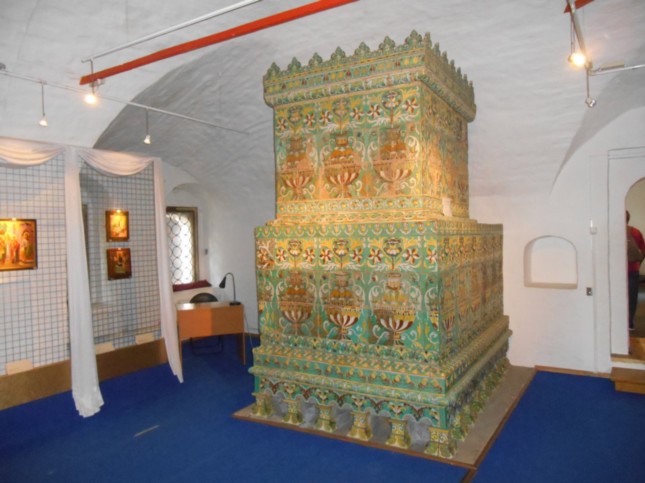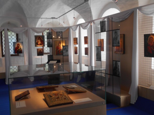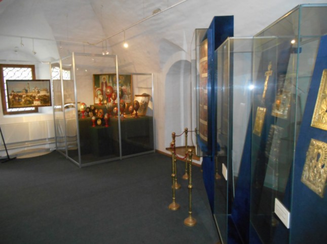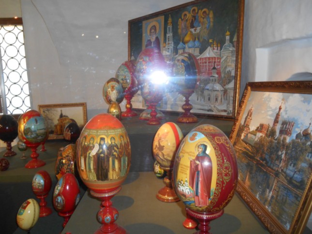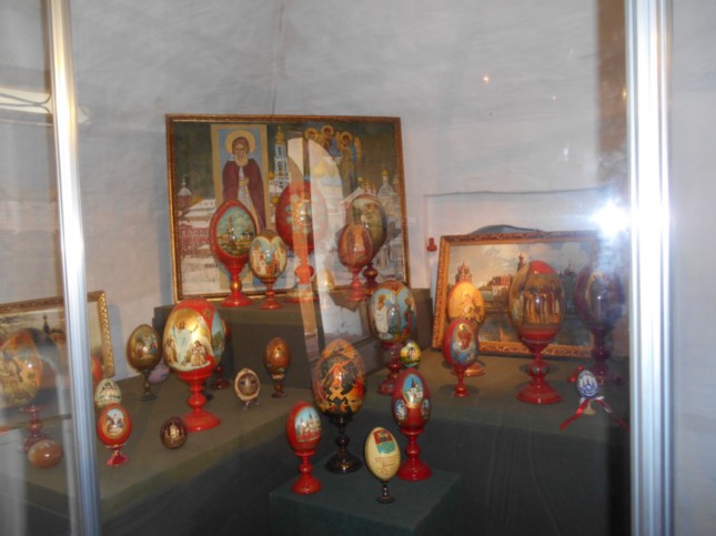 Colección de huevos Fabergé de los zares de Rusia en el museo de este convento, protegidos dentro de una vitrina.