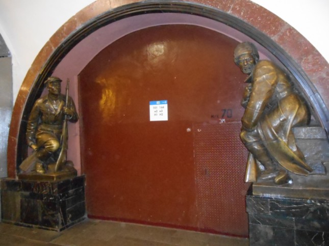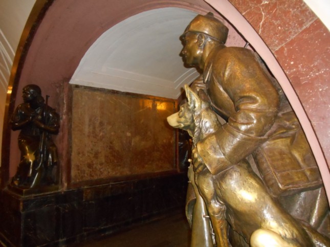 Seguiamos visitando el metro de Moscú, en el que ahora vemos dos esculturas de bronce.