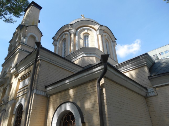 Tras esa parada, continuamos con el autobús para continuar con la visita panorámica y nos llevaron a una tienda típica, pero yo no entré en ella y me fuí a ver esta iglesia, que teníamos enfrente, pero no se qué iglesia es porque los nombres en ruso y ruso yo no se...