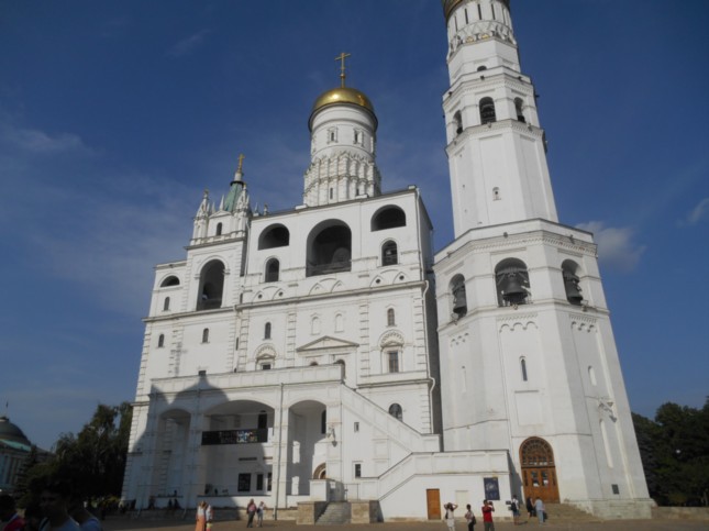 La torre del campanario de Ivan el Grande, tiene terrazas y galerias descubiertas con campanas en cada una de las plantas, esta construida en ladrillo y piedra blanca, Tiene una escalera con 329 peldaños hasta la cúpula.