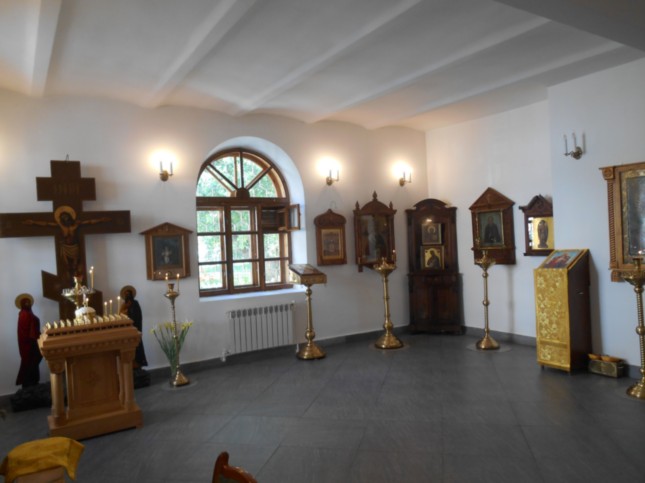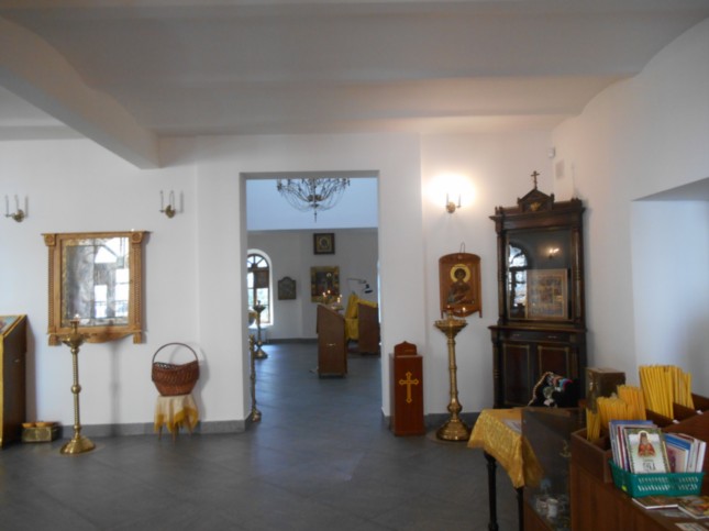 El iconostasio tiene mas iconos que lo establecido y deben contemplarse desde una distancia para apreciar la cantidad de figuras que los componen.