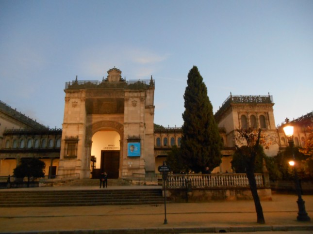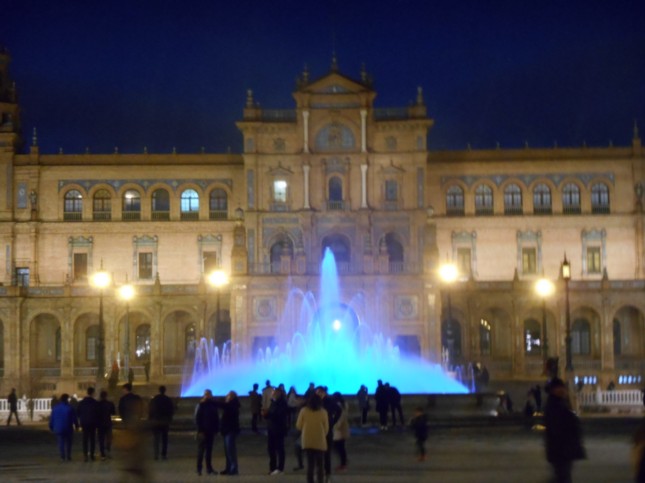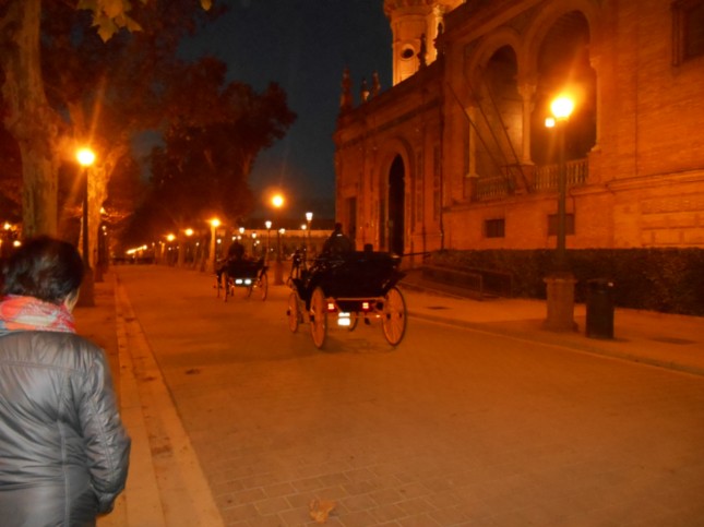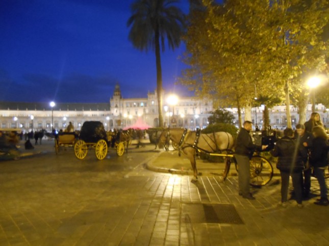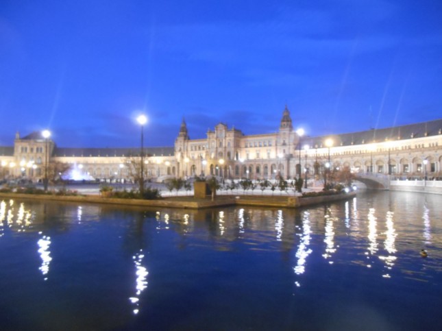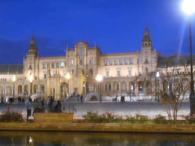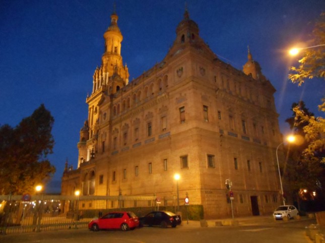 Ya anocheciendo en Sevilla, recorriamos el Parque de María Luisa, haciendo fotografias de edificios emblemáticos.