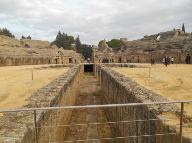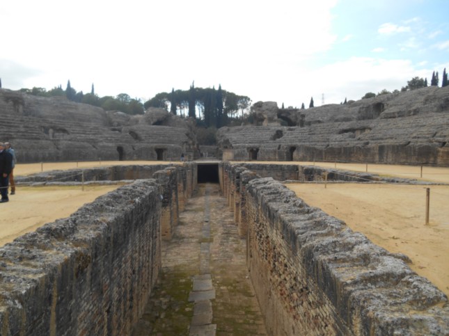 El Anfiteatro de Itálica,destaca porque tenía un aforo de entre 20 y 25.000 plazas. Es de planta ovalada y con un graderío dispuesto en tres niveles. En el centro hay una fosa subterránea, o foso bestiario, destinado a retener a los animales antes de su salto a la arena.