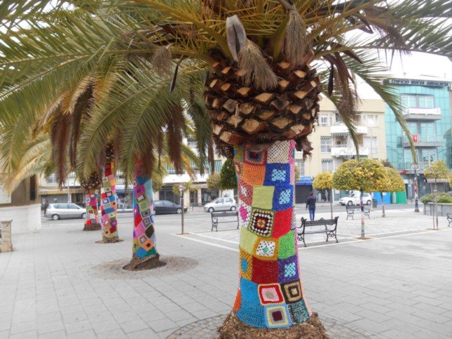 Ya en Montilla, me llamó la atención esta forma de adornar las palmeras dentro del Parque de Las Mercedes entre las avenidas de María Auxiliadora, de Andalucía y la calle José Ortiz Sánchez, en forma de triángulo isósceles.