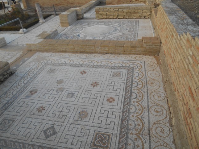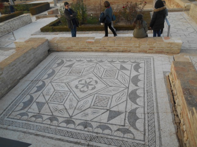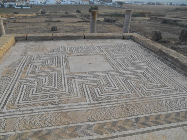 Otro mosaico romano original de la casa de Neptuno, con caracteristicas de laberinto en la disposición de los mosaicos.