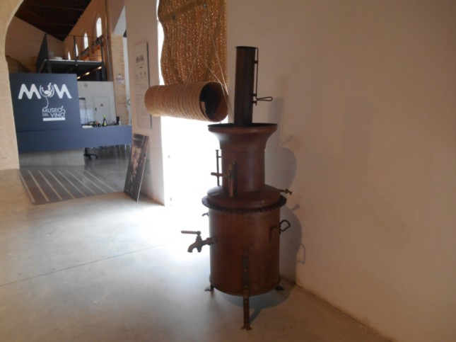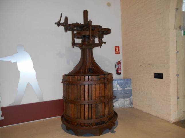 En esa bodega, prensa antigua, donde se prensaba la uva.