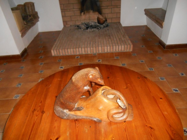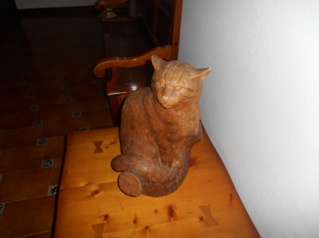 Figura de madera de un gato en el Centro de Visitantes de La Rocina.