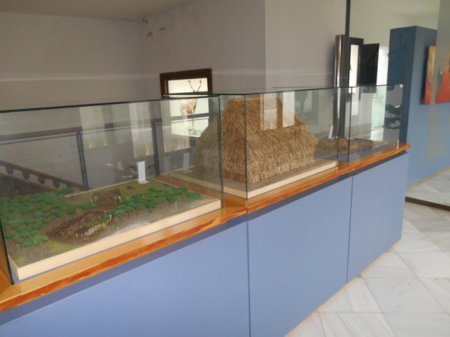 Estas vitrinas contienen maquetas del entorno del Parque Nacional del Coto de Doñana.
