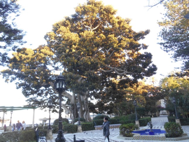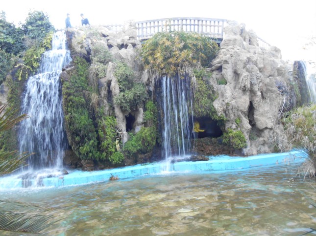 La misma cascada y el lago artificial en ese Parque Genovés de Cádiz.