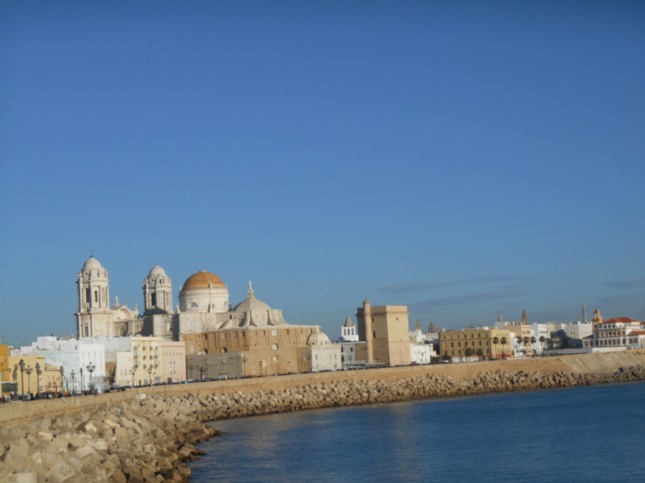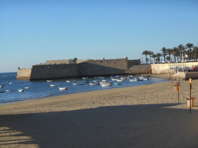 En esta fotografía, tenemos el castillo de Santa Catalina y la playa de La Caleta.