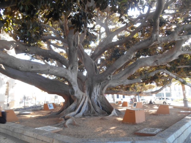 Fotografía de uno de los ficus que hay frente la playa de La Caleta, que aunque no es arte hecho por el ser humano, si que es arte hecho por la naturaleza y es por eso más natural.