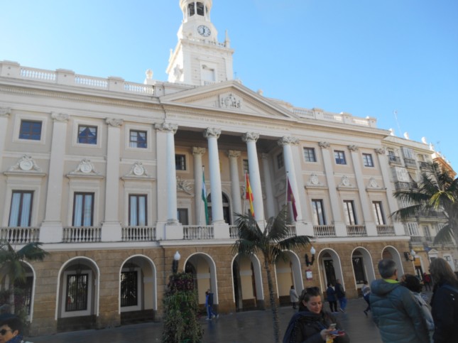 Tras hacer unas fotografias, de nuevo al autobús para terminar la visita panorámica en el mismo en la plaza de San Juan de Dios, donde como se ve está el Ayuntamiento gaditano.