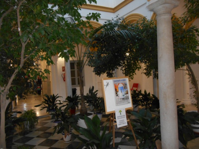 Entramos a ver una exposición de arte, fotografiando el patio del palacete por donde se subía a la misma.