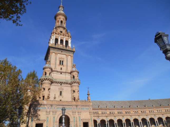 La Plaza de España es un conjunto arquitectónico enclavado en el Parque de María Luisa.
