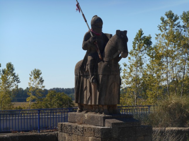 El rumor, la tradición heredada, al menos en la provincia de León, dice que tal caballero refleja al mismísimo Don Suero de Quiñones, héroe de la gesta —o bravuconada, según se mire—, del Passo Honroso sobre el viejo puente de piedra de Hospital de Órbigo (por esa población pasa el Camino Francés a Santiago que yo hice en el año 2014), y que la efigie fue encargada en torno a los años sesenta con motivo de uno de los aniversarios del Passo aunque, por motivos nunca aclarados, quedó varada en la ciudad zamorana y jamás llegó a su destino, la población leonesa de Hospital de Órbigo.