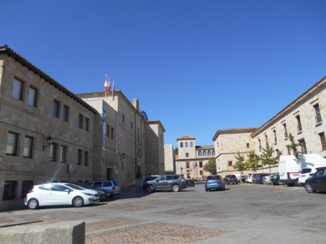 Plaza de Claudio Moyano, donde se ubica la Biblioteca Municipal y viéndose al fondo el edificio de la Diputación zamorana.