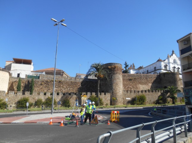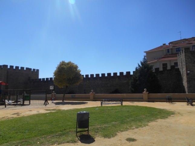 Buscando ya la salida de Plasencia, pero buscando los parques que hay en la parte este de la ciudad, este parque con las murallas al fondo.