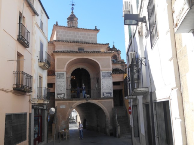 Esta entrada a la ciudad monumental de Plasencia es bastante curiosa, justo encima de la bóveda que forman los arcos de medio punto se levanta una pequeña ermita barroca del siglo XVIII, la ermita de la Salud construida en 1721 aprovechando dos torreones que formaban parte de la muralla de Plasencia.