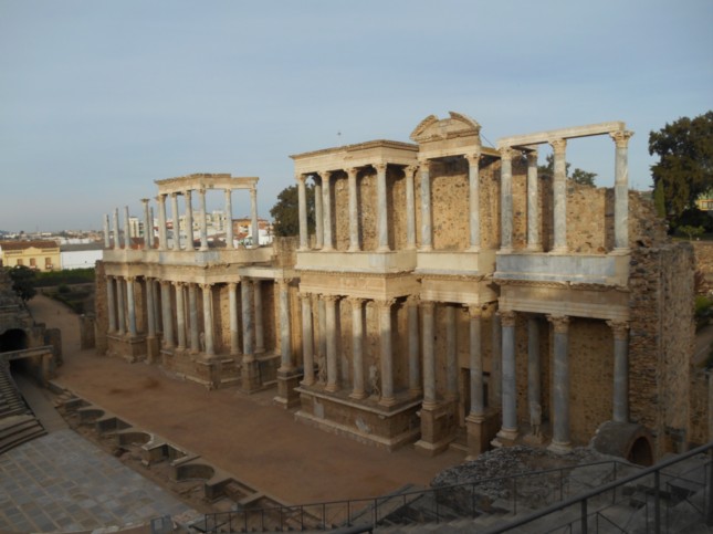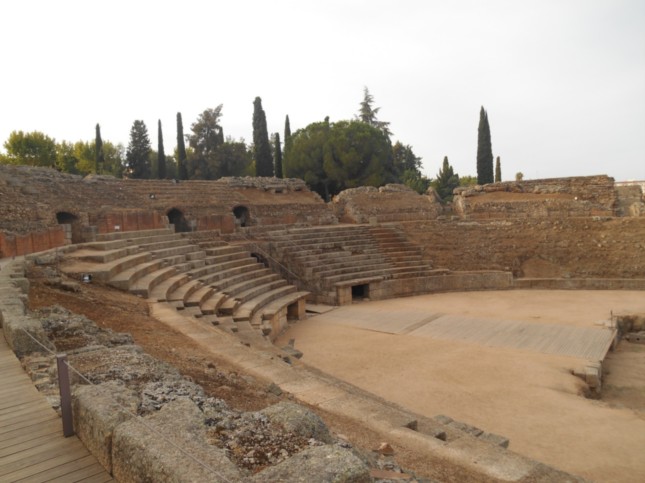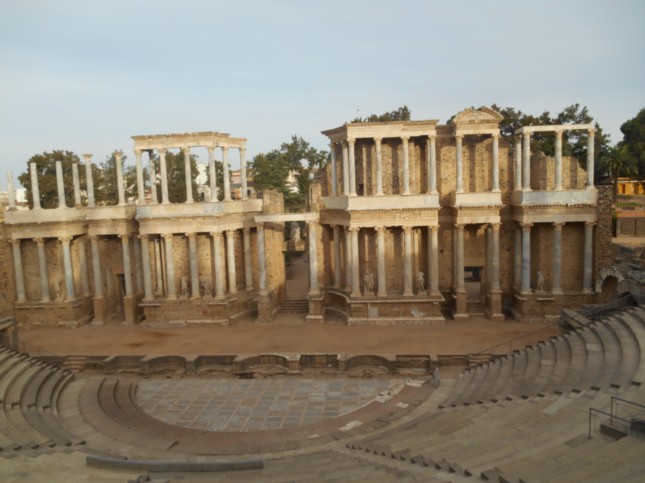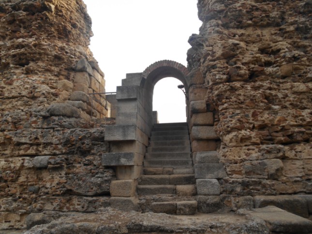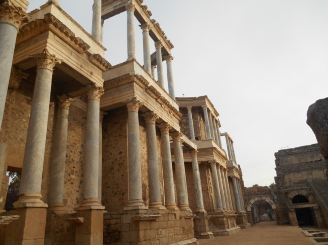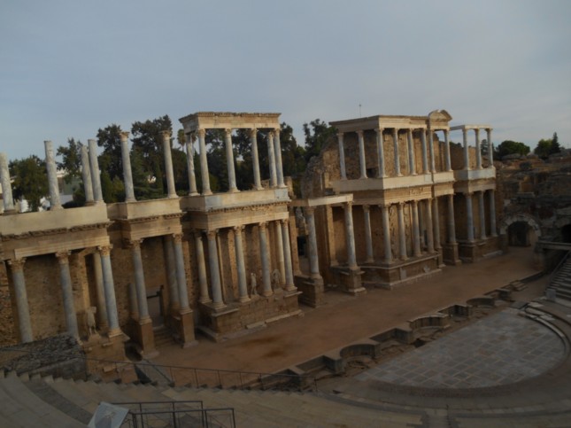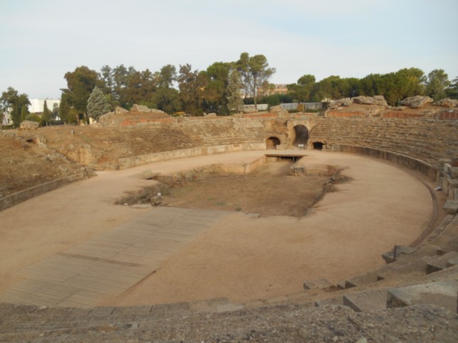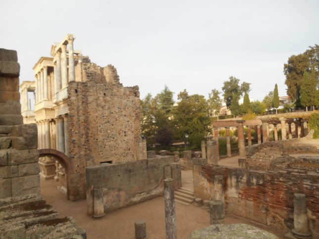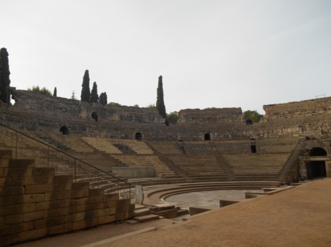 Tras salir del Teatro romano, pasee por el Peristilo.Tras la escena se construyó una zona ajardinada de planta cuadrangular rodeada de columnas y pórticos, el peristilo, que se usaba como área de esparcimiento.