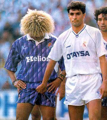 Durante un partido de Liga entre el Valladolid y el Real Madrid, Michel y folclórico jugador colombiano Valderrama, protagonizaron una de las escenas más recordadas del fútbol.