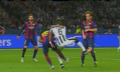 En un balón filtrado al área azulgrana Pogba ejecuta un reverso que lo habría dejado solo ante Claudio Bravo, sin oposición alguna para fusilarlo. Sin embargo, su maniobra no llega a buen puerto por el agarrón clamoroso, tal y como apreciamos en la imagen, de Dani Alves, casualmente hoy futbolista juventino. Era penalty y expulsión del zaguero barcelonista, con lo que podíamos hablar de un posible 1-2 para los turineses y ventaja númerica, algo que un equipo italiano gestiona y maneja como nadie.