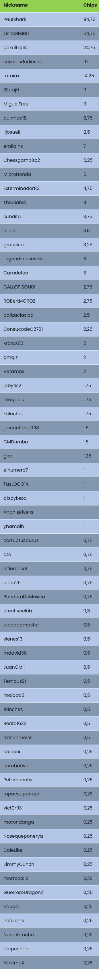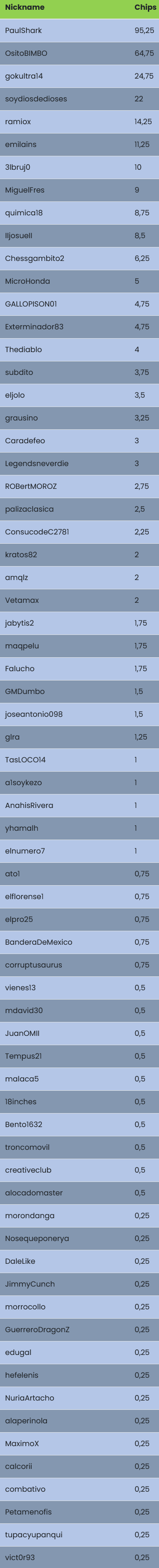 Clasificación -Chips Actualizada-