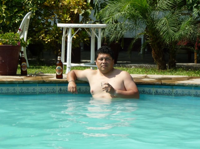 en la piscina del hotel salvatierra refrescandome con unas chelitas luego del paseo por el desierto.