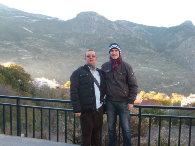 En compañia de mi gran amigo Fco. Jesús , preciosa vista de Güejar - Sierra ( Granada )