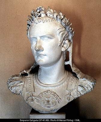 | Hijo de Germánico (victorioso general romano), quien a su vez era hijo adoptivo del emperador Tiberio, Calígula de niño acompañó a su padre en sus expediciones militares por Germania, donde se calzaba con las cáligas de los legionarios, quienes le dieron el sobrenombre afectuoso de «Calígula» («botitas»). Tras la celebración en Roma del triunfo de su padre, marchó con él a Oriente, donde Germánico murió. Calígula regresó con su madre y sus hermanos a Roma. Antes de su muerte, Tiberio ordenó que el Imperio debía ser gobernado de forma conjunta por Calígula y Tiberio Gemelo.