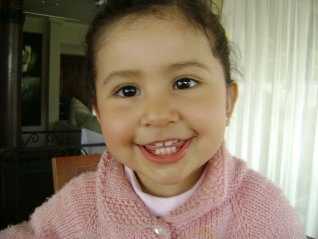 ¡Qué preciosa es tu niña! si dan ganas de darle mordisquitos en los mofletes. ¡qué bonita!