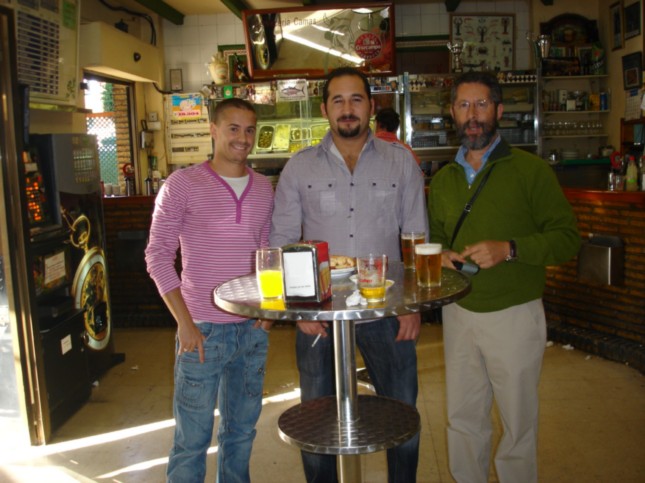 De nuevo los tres buhoneros en una cervecería. Buenos mariscos.