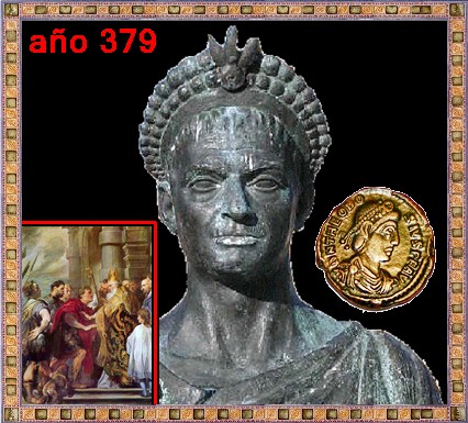 Año 379 - Graciano, hijo y sucesor de Valentiniano I, proclama a TEODOSIO I como su colega al frente del imperio romano oriental.