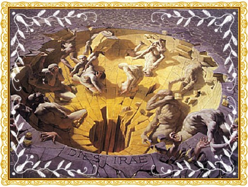 El dia de la ira... o sea, el dia del juicio final, en el que Dios Todopoderoso (Pantocrátor) nos juzgará a todos los mortales, indicándonos lo que nos hemos ganado en la vida terrenal... el paraiso infinito, o bien las llamas eternas del infierno.