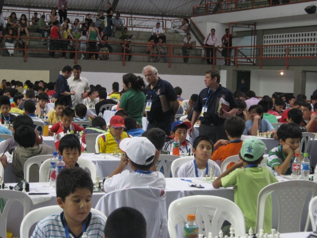 XXII Torneo Panamericano de Ajedrez de la Juventud 2011 ARBITRO INTERNACIONAL VÍCTOR ESTEBAN DE ARGENTINA ,E NEL CENTRO Y EL ARBITRO NACIONAL ERNESTO SOLANO DE COLOMBIA,ATRAS ESTA DIALOGANDO EL ARBITRO FIDE FRANCISCO MONTAÑA DE COLOMBIA CON EL ENTRENADOR ROJAS DEL CAMPEON PANAMERICA DE SES TORNEO MF JHOSUA RUIZ